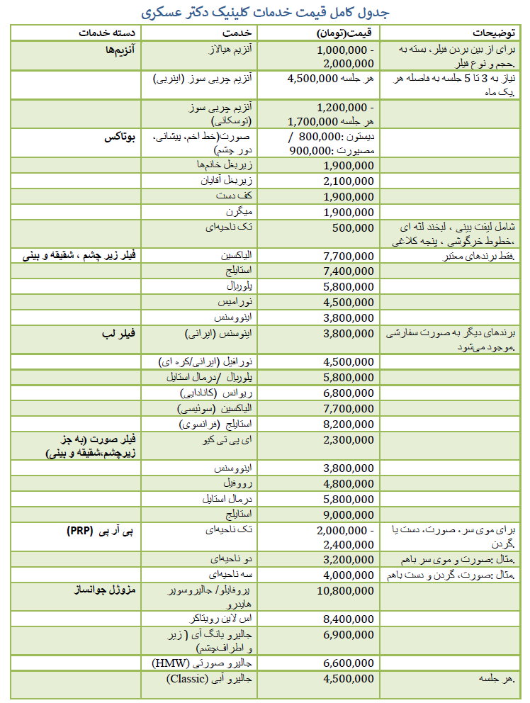 تعرفه خدمات کلینیک دکتر عسکری